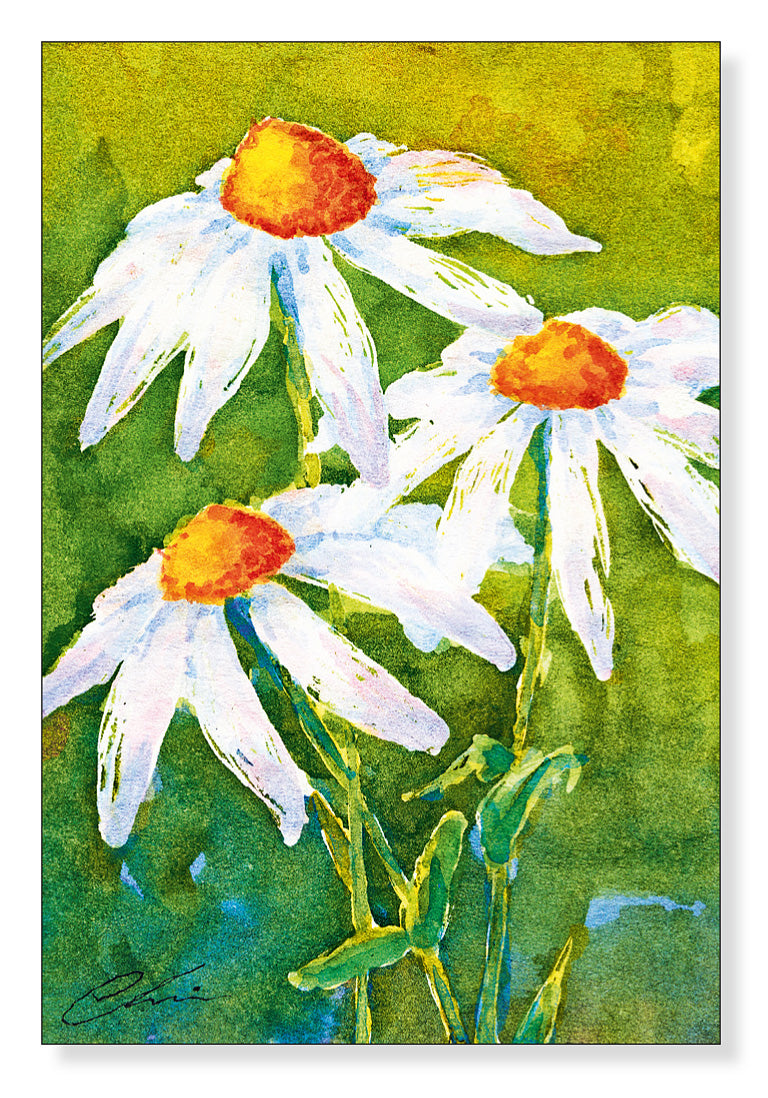 Das Motiv «Frühlingserwachen», Original Wasserfarben, mundgemalt von Christopher John Kuster.