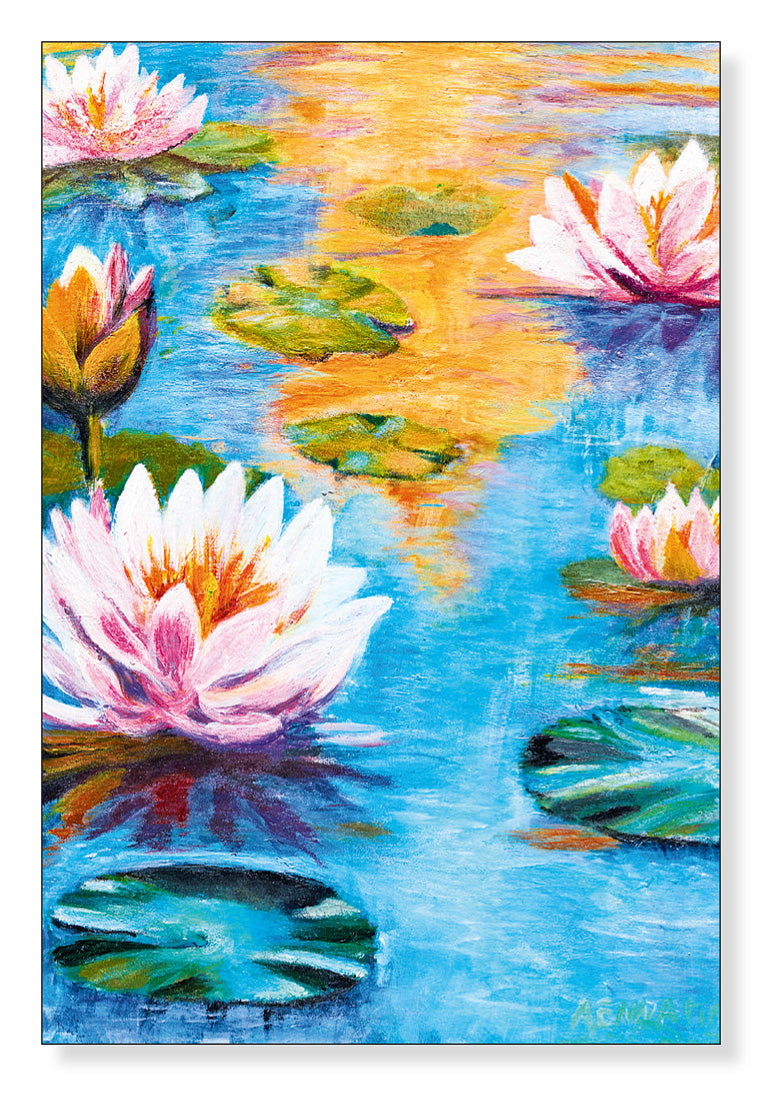 Das Motiv «Seerosen», Original Acryl, mundgemalt von Anouar En Namry Ahmed.